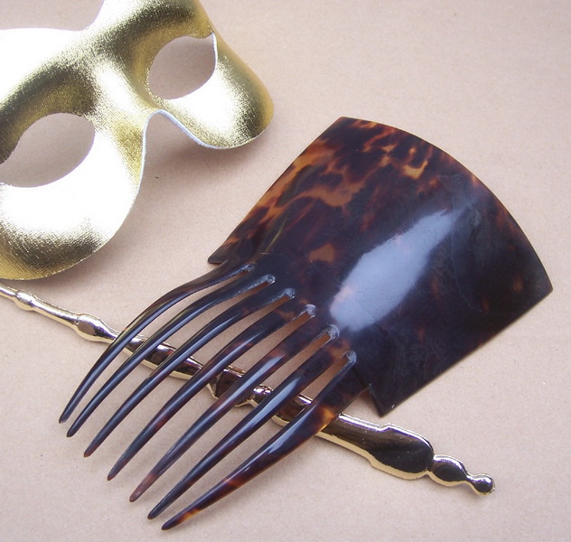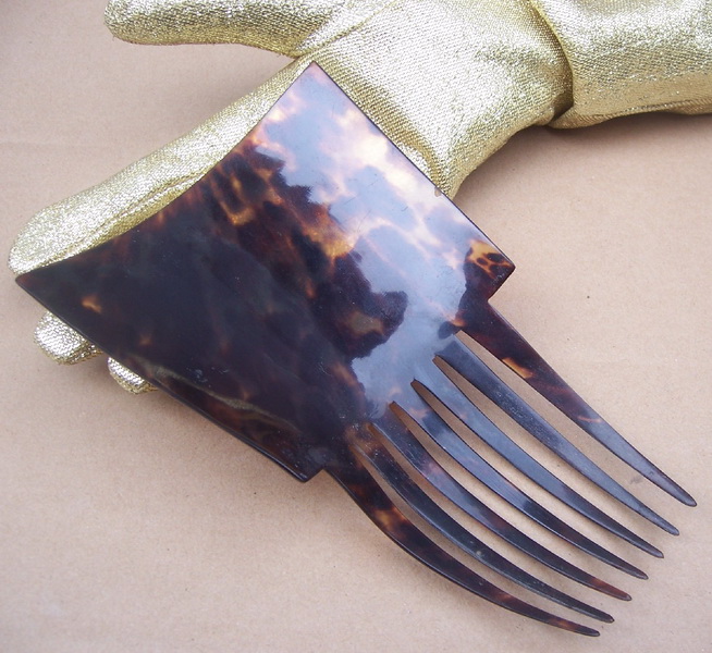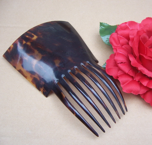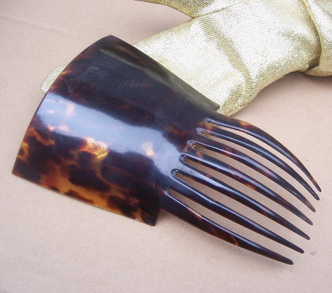 This comb is of the type known as a Spanish or mantilla comb  because it resembles the traditional ornaments worn by Spanish ladies with  their native dress. These tall mantilla style  headings became popular in the 1870s due to the debut of Bizet’s opera Carmen  in 1875. Early performances scandalised audiences but it quickly became one of  the most popular operas in the world with a significance fashion influence.