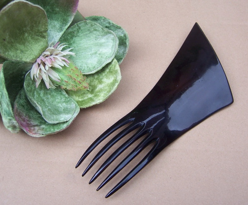 Unsigned Black Celluloid Triangular Art Deco Comb