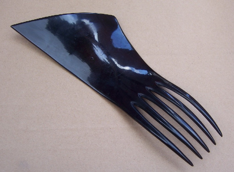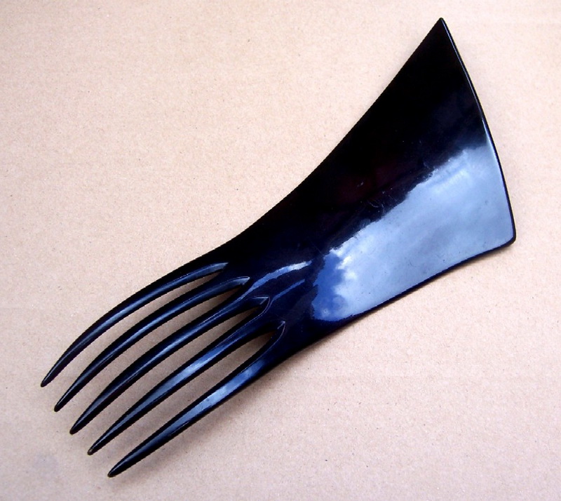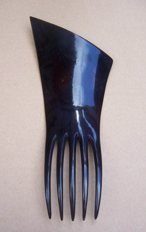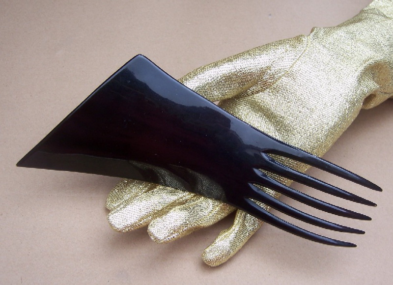Many of these later Art Deco combs are in pure, abstract forms, with little surface ornamentation for a very powerful effect. The strong contrasting shapes – ovals, squares, or oblongs - show a deep appreciation and understanding of the potential of the material.