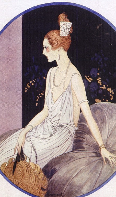 This pretty little side comb is typical of the small and almost insignificant ornaments which we see in fashion illustrations. For example the final illustration, which is an ad for the combs of Auguste Bonaz, shows the model to be wearing a comb of very similar colour and dimensions.