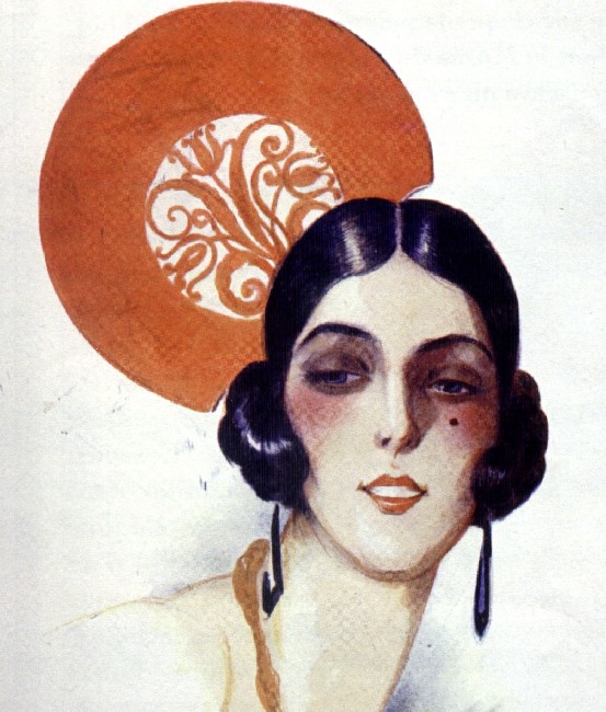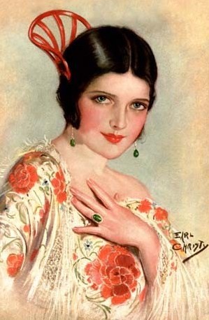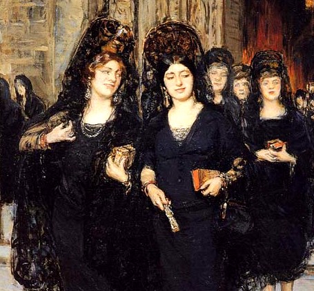 We are all familiar with this kind of Peinita, where  the enormous cresting rises anything from eight to twelve inches above the  wearers head, and supports a beautiful lace veil. From their native land the  wearing of these beautiful and unusual ornaments spread across the world, to Europe and the USA. They have been high fashion in  various historical periods throughout the 19th and 20th  centuries. Mantilla combs are still to this day a favourite choice for brides  of Spanish descent, while smaller versions are favoured by those interested in  Flamenco or other forms of Spanish dance.