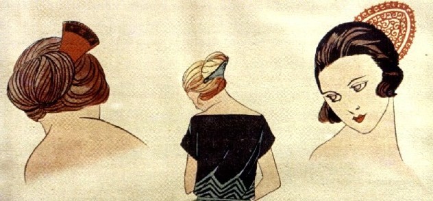 An essentially decorative style of the years following the  First World War, Art Deco reached its peak in 1925 at the Exposition  des Art Decoratifs et Industrielles Modernes in Paris, whence the name comes. By clicking on  the button marked ARTICLES you will find a series of very detailed guides I  have written on the hair accessories of the Art Deco period.